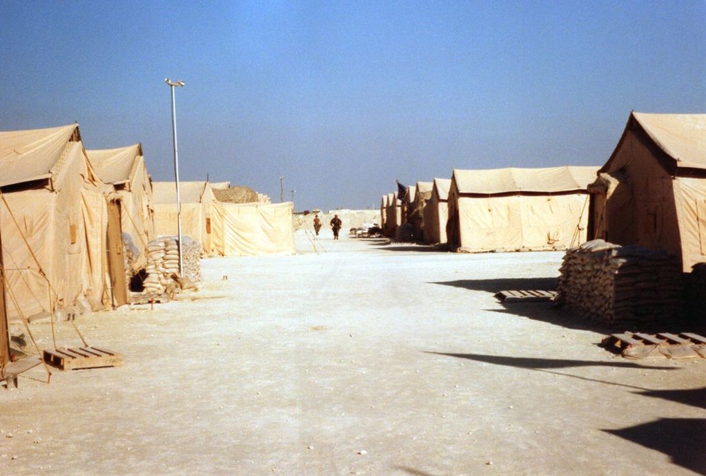 Tent City and Vulture Boulevard, during the war. (After the war, the dirt street was actually paved!) The tents were air-conditioned, and were reasonable comfortable. At this phase of the war, we hadn't yet built much in the way of fancy bunkers, decks, tent entrance portals, or other niceties.