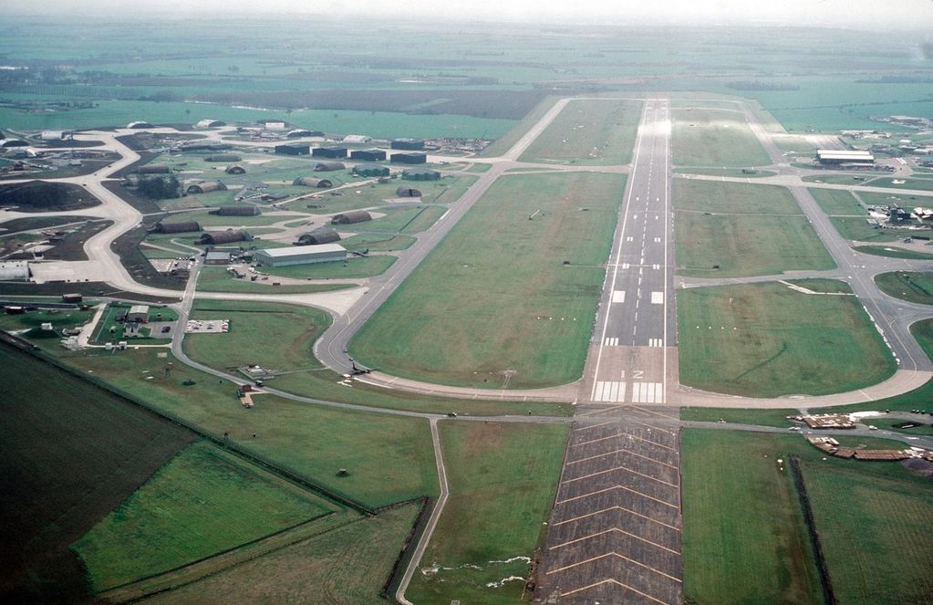A single runway bisected the base. In this photo, the 511th Vultures squadron buildings were on the far side of the runway. Note the numerous hardened aircraft shelters (HASs).